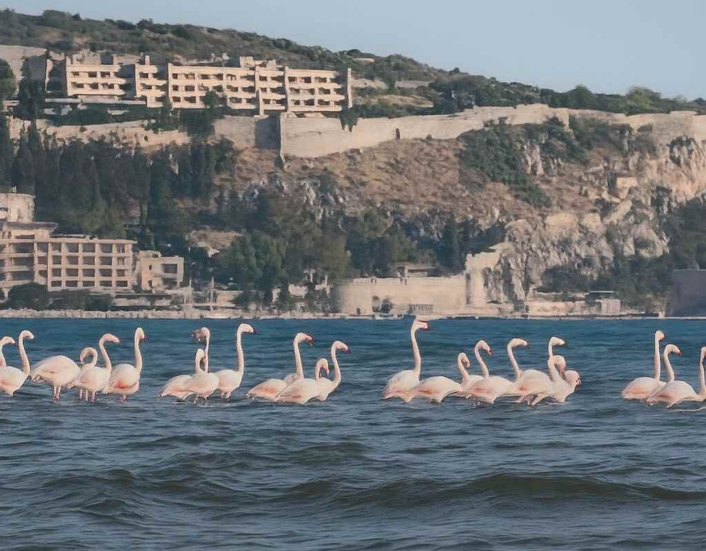 Εορταστική επίσκεψη από δεκάδες φλαμίνγκο δέχτηκε το Ναύπλιο