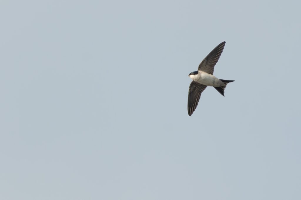 Οχθοχελίδονο (Riparia riparia): ανοιχτό καφέ πάνω μέρος με λευκή ζώνη πίσω από το λαιμό, λευκό κάτω μέρος με καφέ περιλαίμιο και κοντή ουρά (περνάει μόνο από τη Λέσβο για βορειότερα).