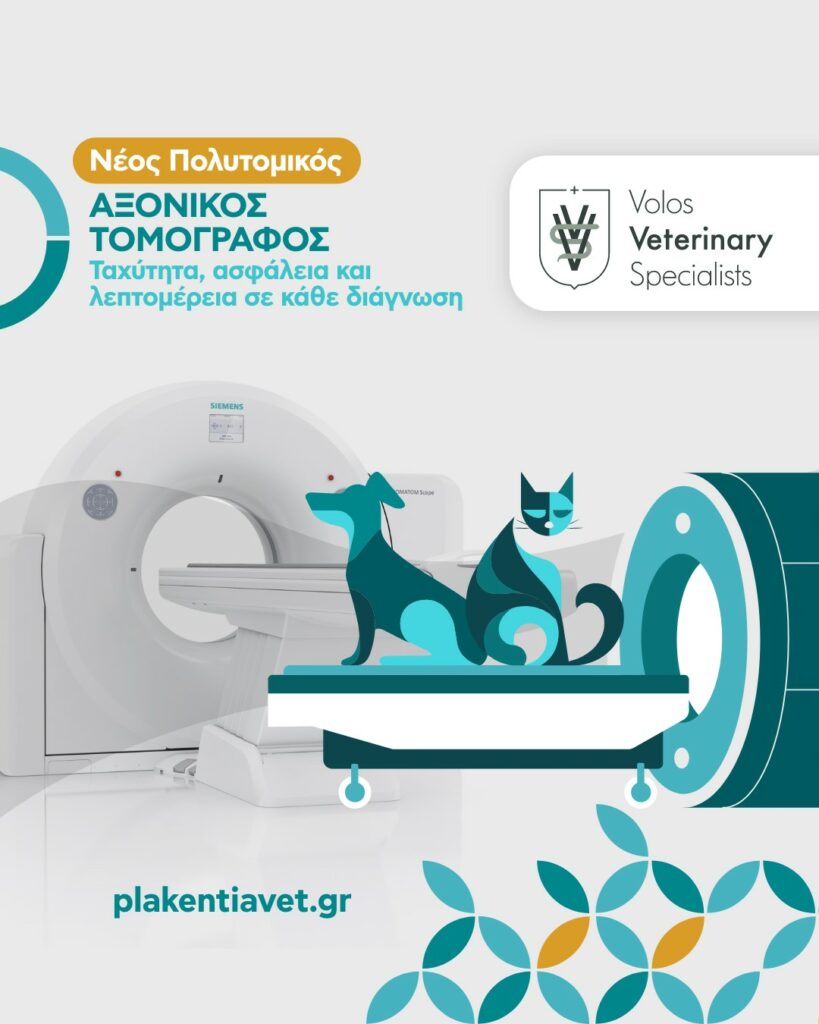 Το Κτηνιατρικό Κέντρο «Volos Veterinary Specialists», μέλος του Ομίλου Κτηνιατρικών Κλινικών Πλακεντία, με έδρα τον Βόλο, ενισχύει τις διαγνωστικές του δυνατότητες με την εγκατάσταση και λειτουργία ενός σύγχρονου πολυτομικού αξονικού τομογράφου Siemens, φέρνοντας την πιο πρόσφατη τεχνολογία αιχμής στην απεικόνιση μικρών ζώων.