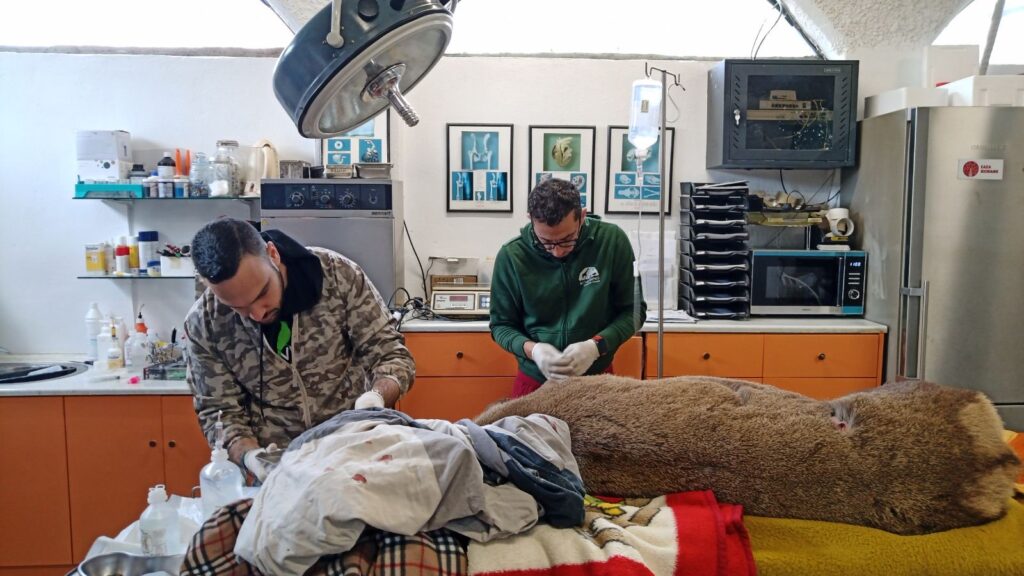 Το ζώο υποβλήθηκε σε ακτινολογικό έλεγχο και πραγματοποιήθηκε περιποίηση και συρραφή των τραυμάτων του. Θα παραμείνει εκεί για τις επόμενες ημέρες, μέχρι να διερευνηθεί η αιτία των τραυμάτων και να ολοκληρωθεί η ανάρρωση του. Η πρόγνωση κρίνεται ως επιφυλακτική.