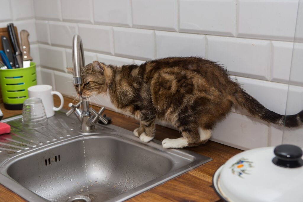 Τρεχούμενο νερό. Άλλη μία μεγάλη τους αγάπη. Έχουμε ανοιχτή τη βρύση στην κουζίνα. Πηδάνε στον πάγκο και τον νεροχύτη και αρχίζουν να παίζουν με το νερό. Βάζουν το πόδι τους και το πετάνε πέρα δώθε. Μερικές μάλιστα έχουν απίστευτη εμμονή με αυτό. Άλλες πάλι μπορούν να παρακολουθούν μια βρύση που στάζει για ώρες. Η κίνηση και ο ήχος του νερού μοιάζουν στον θόρυβο με φυσικά ρυάκια, ποτάμια και ενεργοποιούν έτσι τα κυνηγετικά ένστικτα των γατών.