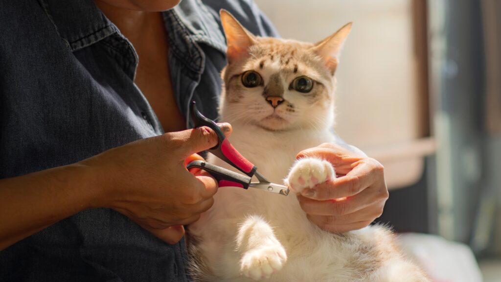 – Πριν ξεκινήσουμε τη διαδικασία, σιγουρευόμαστε ότι η γάτα να είναι ήρεμη και ταϊσμένη. Αν είναι ανήσυχη, το τελευταίο που θα χρειάζεται είναι εμάς να της κόβουμε τα νύχια.