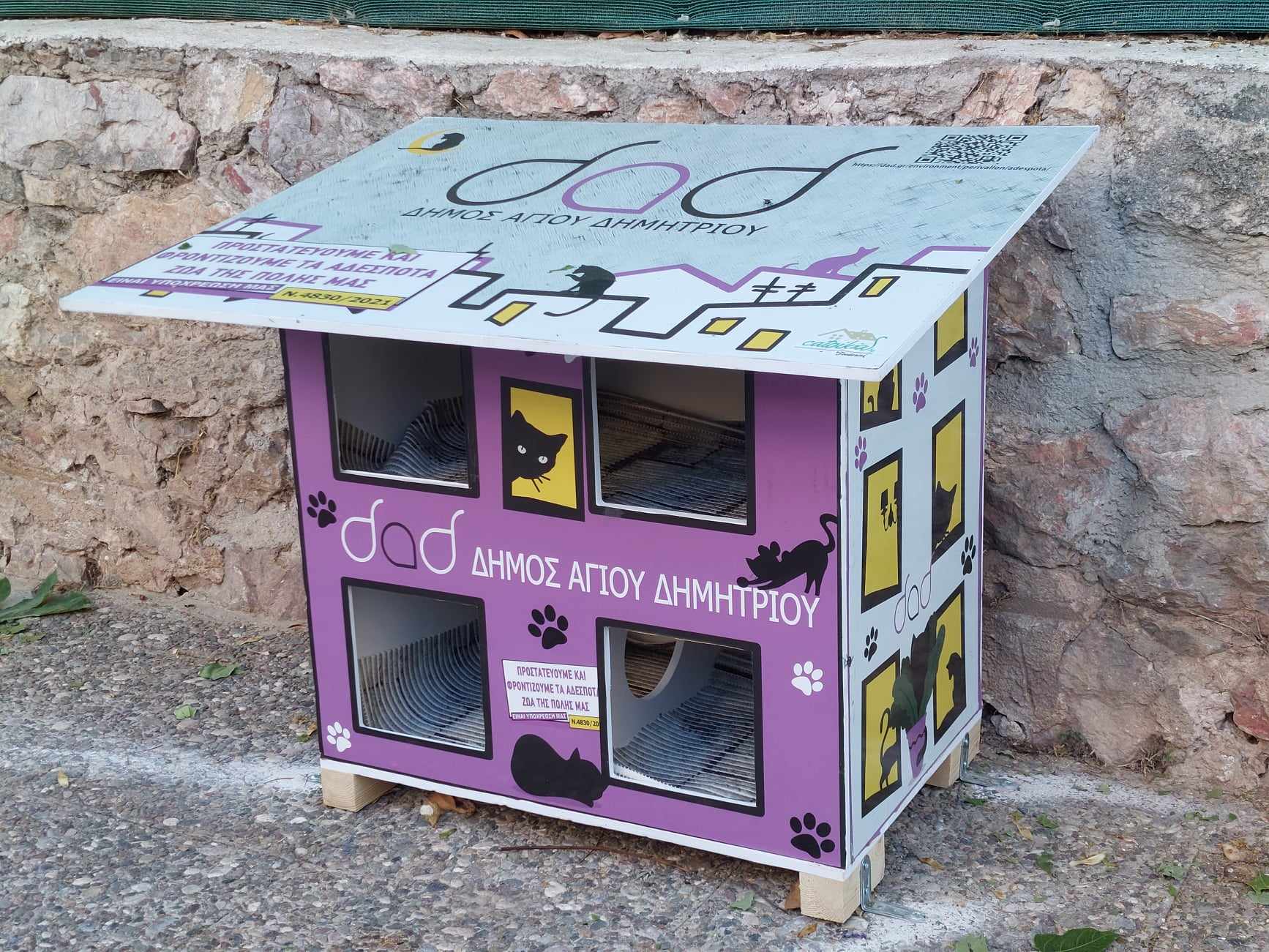 Διώροφα σπίτια-έκπληξη για τις γάτες τοποθετήθηκαν στους δρόμους του Αγίου Δημητρίου