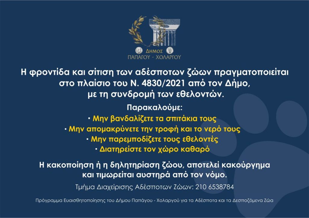 Η συνεργασία όλων είναι καθοριστική για την ευζωία των ζώων και την αρμονική συνύπαρξη στην πόλη μας.