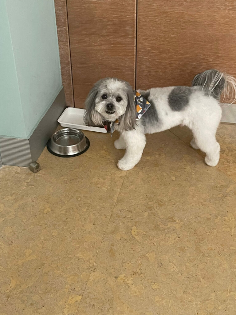 Το 4,5 ετών ημίαιμο Shorkie είναι πολύ φιλικό και μπορεί να πλησιάσει αν κάποιος φωνάξει το όνομά του. Δυστυχώς δεν φοράει το λουράκι με την ταυτότητά του, παρά μόνο ένα γκρι αντιπαρασιτικό λουράκι του εμπορίου.