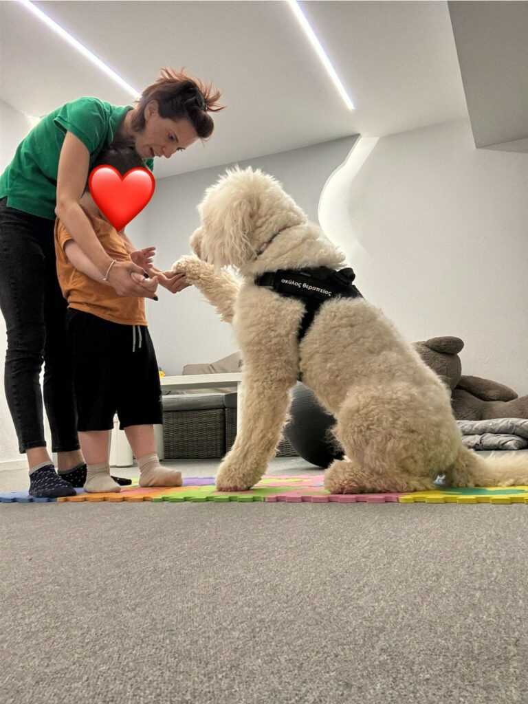 ”Θα σας πω ένα παράδειγμα όσον αφορά τους στόχους που θέτουμε σε Κέντρα Ειδικής Αγωγής που δουλεύουμε με παιδιά που είναι στο φάσμα του αυτισμού. Μέσω του σκύλου μπορούμε να δουλέψουμε το αισθητηριακό κομμάτι σε όλα τα επίπεδα. Τα παιδιά αυτά δυσκολεύονται αρκετά με τα αισθητηριακά τους. Έτσι το τρίχωμα του σκύλου, η γλώσσα του, το γάβγισμα και άλλοι ήχοι που βγάζει το ζώο δημιουργούν ισχυρά αισθητηριακά ερεθίσματα. Ο σκύλος αλληλεπιδρά με το παιδί. Ο στόχος μας λοιπόν είναι να μπορέσει είτε ο εργοθεραπευτής είτε ο ειδικός παιδαγωγός μαζί με το παιδί να δουλέψουν παράλληλα με τον σκύλο θεραπείας πάνω στην αισθητηριακή απευαισθητοποίηση.