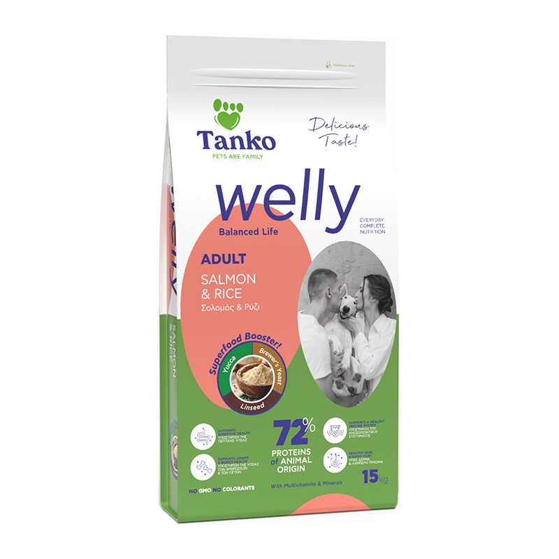 Για τους ενήλικους σκύλους της οικογένειας, η Welly Adult προσφέρει τα ίδια θρεπτικά συστατικά, προσαρμοσμένα στις ανάγκες του ενήλικου ζώου. Βγαίνει σε συνδυασμό κοτόπουλου, μοσχαριού και ρυζιού με superfoods, με 80% περιεκτικότητα σε ζωική πρωτεΐνη, σε συσκευασίες των 3 και των 15 κιλών, καθώς και με σολομό και ρύζι, με 72% περιεκτικότητα σε ζωική πρωτεΐνη, σε συσκευασία των 15 κιλών.