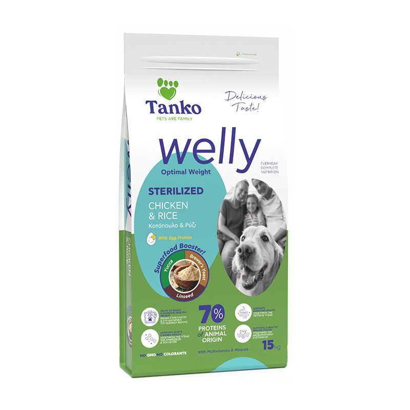 Στην περίπτωση που οι ανάγκες του σκύλου σας είναι πιο στοχευμένες, μην ανησυχείτε. Η σειρά Welly σίγουρα τις καλύπτει, με τις ξηρές τροφές Welly Sterilized για στειρωμένους σκύλους, με μόλις 12% λιπαρά. Η Sterilized λόγω των χαμηλών λιπαρών της είναι επίσης κατάλληλη και για ηλικιωμένα, αλλά και για σκυλάκια που χρειάζονται έλεγχο του βάρους τους.