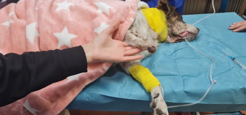 Το ζώο μετά την κακοποίησή του, σε πολύ άσχημη κατάσταση, μεταφέρθηκε αρχικά σε ιδιωτική κλινική και στη συνέχεια στο διαδημοτικό κέντρο περίθαλψης ζώων, ΔΙΚΕΠΑΖ, όπου ξεκίνησε ένας αγώνας από την πλευρά των κτηνιάτρων για να το σώσουν. Οι ελπίδες από την αρχή ήταν λίγες.