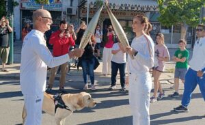 Sugar, η σκυλίτσα της ΕΠΟΜΕΑ που συμμετείχε στη λαμπαδηδρομία της Ολυμπιακής Φλόγας