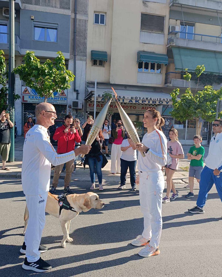 Την Παρασκευή 26/4, η Sugar, ο σκύλος διασώστης της Επίλεκτης Ομάδας Ειδικών Αποστολών (Επ.Ομ.Ε.Α.), συμμετείχε παρέα με τον χειριστή της, Δημοσθένη Μανωλή, στην λαμπαδηδρομία της Ολυμπιακής Φλόγας στο κέντρο της Αθήνας, εν όψει τον Ολυμπιακών Αγώνων “Παρίσι 2024”.