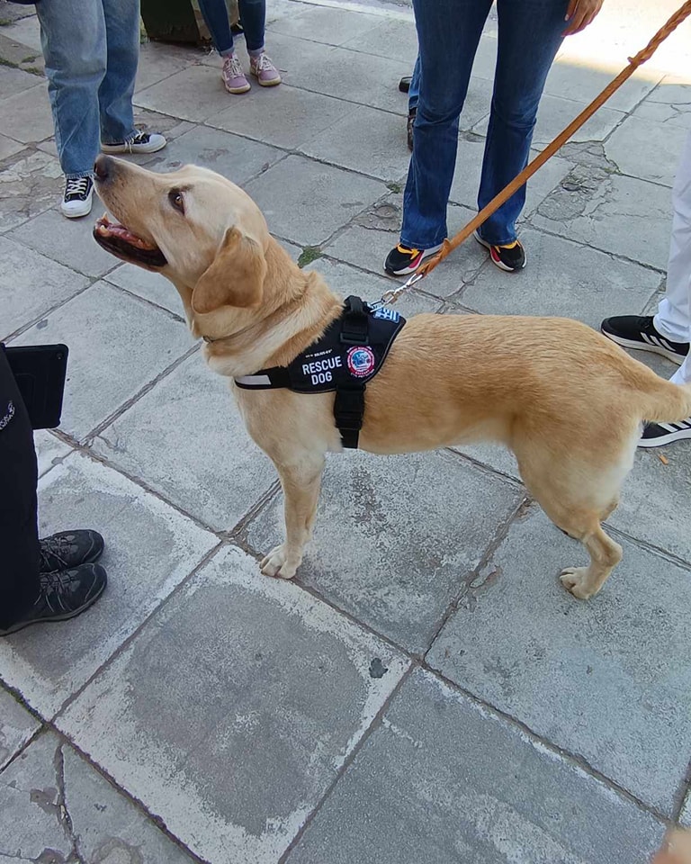 Η Sugar ήταν ήδη μεγάλη, ήταν 14 μηνών, λίγο αποτρεπτικό για να γίνει διασώστρια – να εκπαιδευτεί – αλλά είχαμε την τύχη να έχουμε έναν από τους καλύτερους επαγγελματίες εκπαιδευτές σκύλων, τον κ. Γιάννη Κονδράρο, ο οποίος δουλεύει στην αεροπορία και εκπαίδευε μέχρι τώρα τα σκυλιά της αεροπορίας, μαζί με τις άλλες του δραστηριότητες (σκυλιά για τυφλούς, σκυλιά που ανιχνεύουν το ζάχαρο) και την ανέλαβε από τον Νοέμβρη του 2020. Έτσι, ξεκίνησε η εκπαίδευσή της για έρευνα και διάσωση επιζώντων από σεισμούς και άλλες φυσικές καταστροφές. Πολλές φορές, φυσικά, εκπαιδεύτηκε και από τον πρόεδρο της ομάδας, τον κ. Ρουμελιώτη, ο οποίος είναι κι αυτός στην Πολεμική Αεροπορία και υπηρέτησε στην Κινητή Ομάδα Αντιμετώπισης Καταστροφών (ΚΟΜΑΚ), οπότε είχαμε και έχουμε μέχρι και τώρα τη δυνατότητα να εκπαιδευόμαστε στο πεδίο εκπαίδευσης που εκπαιδεύονται και τα σκυλιά της ΚΟΜΑΚ.