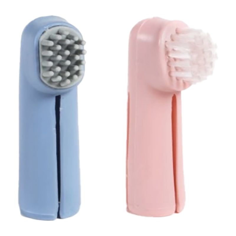 Σετ με δυο οδοντόβουρτσες για τα δάκτυλα για τον καθαρισμό των δοντιών, για σκύλους και γάτες. Η μια έχει τρίχινα δόντια για τον καθαρισμό των δοντιών και η άλλη έχει λαστιχένια δόντια για τον καθαρισμό των ούλων. Είναι εύκολες στη χρήση, καθώς τις τοποθετείτε στο δάκτυλό σας και έτσι έχετε καλύτερο έλεγχο στην κίνηση.