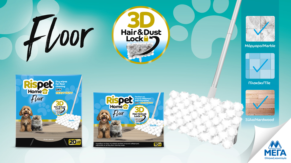 Όσο για την καθαριότητα του σπιτιού σας από τρίχες, σκόνη και σημάδια που αφήνουν τα κατοικίδια στην καθημερινότητα, μην ανησυχείτε: η σειρά Rispet Home σας βοηθά να διατηρείτε το περιβάλλον σας καθαρό και φρέσκο, ακόμη κι όταν το ζωάκι σας κινείται γεμάτο ενθουσιασμό μέσα στο σπίτι. Τα Rispet Home Ανταλλακτικά Πανάκια είναι η νέα πρωτοποριακή λύση για στεγνό σκούπισμα και καθαρισμό δαπέδων, καθώς διαθέτουν πανί με πυκνές 3-D ανάγλυφες τούφες υψηλής απόδοσης που αιχμαλωτίζουν και συγκρατούν αποτελεσματικά τη βρωμιά, τη σκόνη και τις τρίχες κατοικίδιων ζώων. Είναι κατάλληλα για χρήση σε όλους τους τύπους δαπέδων (ξύλινα δάπεδα, πλακάκια, μάρμαρα).
