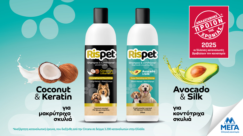Αν ψάχνετε το κατάλληλο σαμπουάν για το μπάνιο του σκύλου σας, δεν χρειάζεται να πάτε μακριά. Η ΜΕΓΑ είναι πάλι εδώ για να σας λύσει τα χέρια με τα σαμπουάν & conditioner RISPET που σχεδιάστηκαν για να ανταποκρίνονται στις διαφορετικές ανάγκες περιποίησης, ανάλογα με τον τύπο τριχώματός του. Κατάλληλα για σκύλους όλων των ηλικιών, με φιλικό pH προς το δέρμα και δερματολογικά ελεγμένα.
