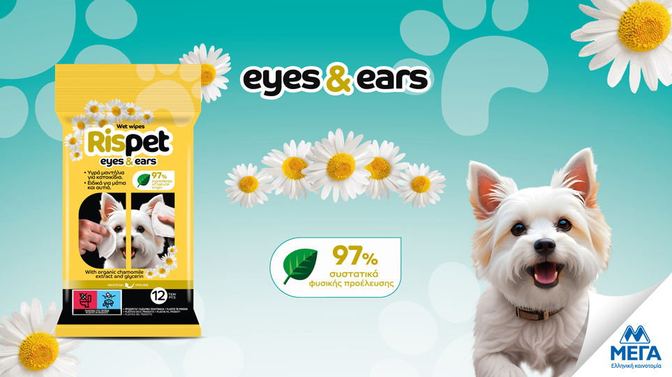 Οι σκύλοι είναι σαν μικρά παιδιά – δεν γνωρίζουν όρια όσον αφορά στο παιχνίδι. Ένας σκύλος που κυλιέται μέσα στα γρασίδια και στις λάσπες μπορεί να χρειάζεται καθάρισμα στις πιο ευαίσθητες περιοχές, όπως είναι τα μάτια και τα αυτιά του, προς αποφυγή ερεθισμών και μολύνσεων. Και γι’ αυτό, η σειρά Rispet της εταιρείας ΜΕΓΑ έχει τη λύση: Τα μαντήλια Rispet Eyes & Ears είναι ειδικά σχεδιασμένα για την καθημερινή υγιεινή των περιοχών γύρω από τα μάτια και τα αυτιά των κατοικιδίων.