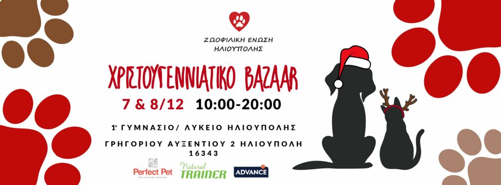 Προγραμματίστε λοιπόν αυτές τις μέρες να περάσετε από ένα τέτοιο μπαζάρ και κάντε από εκεί τα χριστουγεννιάτικα ψώνια σας. Θα βρείτε τα πάντα σε πολύ χαμηλές τιμές. Δωράκια για εσάς, για τους φίλους σας αλλά και για το κατοικίδιό σας. Βοηθάμε τους εθελοντές για να βοηθούν όσα περισσότερα ζώα γίνεται.