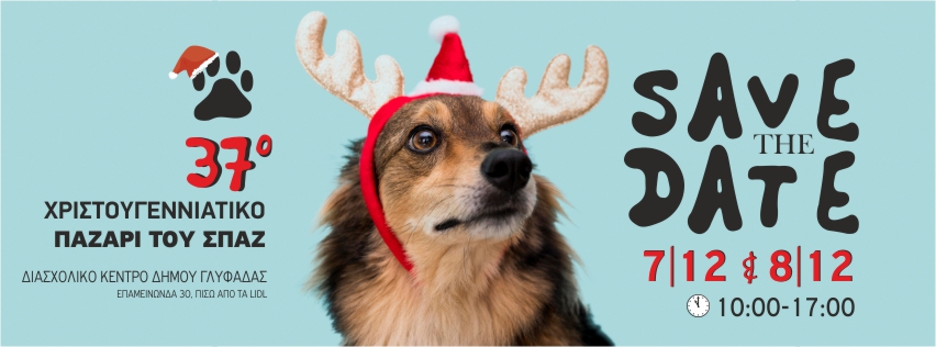 Το 37ο χριστουγεννιάτικο παζάρι του ΣΠΑΖ ( Σύλλογος Προστασίας Αδέσποτων Ζώων) έρχεται με πολλές εκπλήξεις στις 7 και 8 Δεκεμβρίου, στο Διασχολικό Κέντρο Δήμου Γλυφάδας, Επαμεινώνδα 30, Γλυφάδα, από τις 10 το πρωί μέχρι τις 5 το απόγευμα.