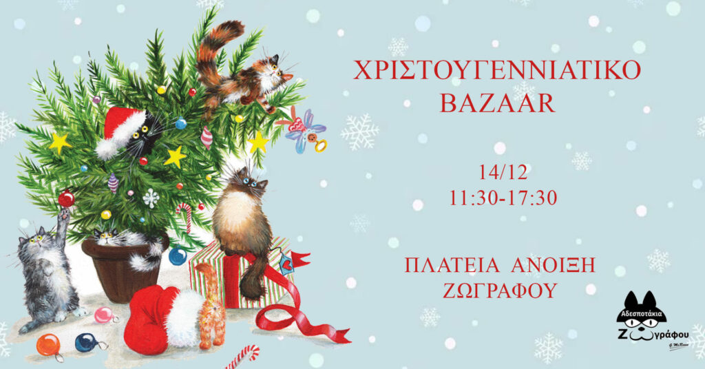 Τα Αδεσποτάκια Ζωγράφου είναι έτοιμα για το χριστουγεννιάτικο μπαζάρ τους, το οποίο θα γίνει στις 14 Δεκεμβρίου, από τις 11.30-17:30, στην Πλατεία Άνοιξη του Ζωγράφου.